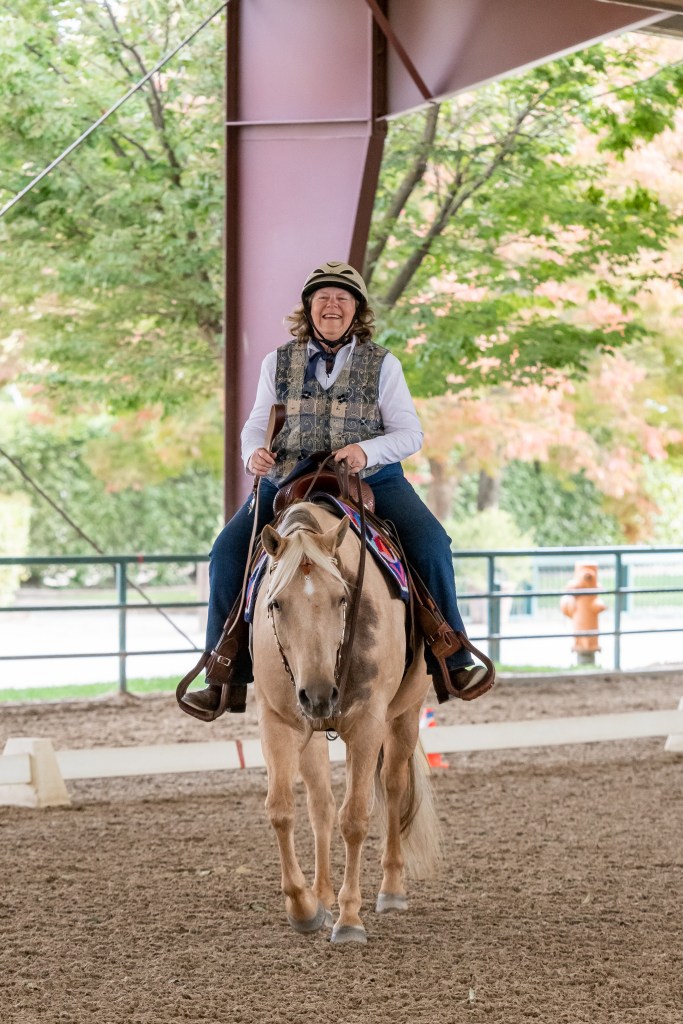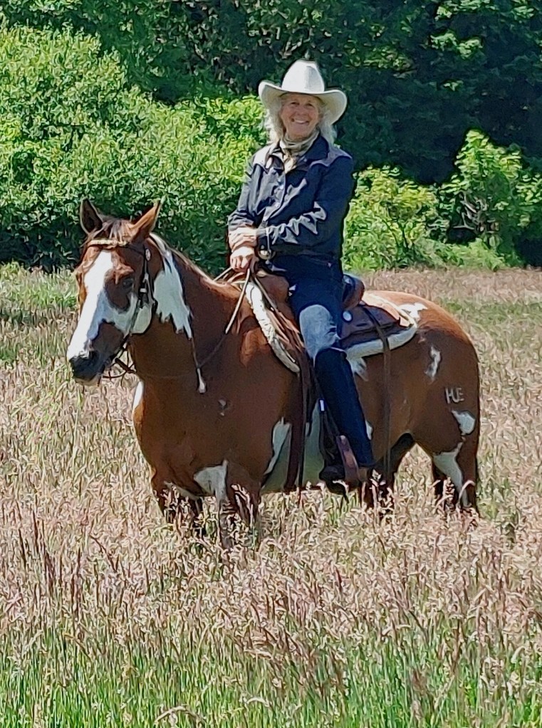 Additional Tidbits: I enjoy a mix of arena work and trail riding. I like the gentle, kind approach to riding that I find in Cowboy Dressage. In my lifetime with horses some of the things that stand out to me are qualifying to compete at 4-H State Fair several years in a row, riding 120 miles down the Skyline Trail, now part of the Pacific Crest Trail, and miles and miles of beach riding. I joke that I used to ride five miles to start riding, heading out at 8:00 am and returning at 8:00 pm. That’s not in the cards anymore but I’ve found that same peace and joy riding Cowboy Dressage.